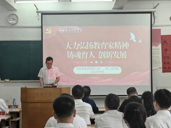 本网讯:9月24日下午,beat365官网教工第一、第二党支部以“大力弘扬教育家精神,铸魂育人,创新发展”为主题,在新民楼207教室联合开展主题党日示范观摩活动。学校党委委员、纪委书记陈文新及兄弟党委观摩代表出席此次活动。活动由学院教工第一党支部书记罗银生主持。
