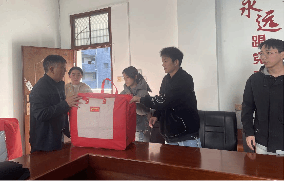 活动前期,学院经过细致摸排,确定了需要帮助的学生名单,并采购了爱心棉被,确保每位有需要的学生都能收到这份来自学院的关爱。活动当天,309会议室摆满了整齐的爱心棉被。院党委书记肖永鸿、学工负责人梁文学和各年级辅导员们一同将棉被逐一发放到学生手中。学生们在接过棉被的同时,脸上洋溢着感激之情。