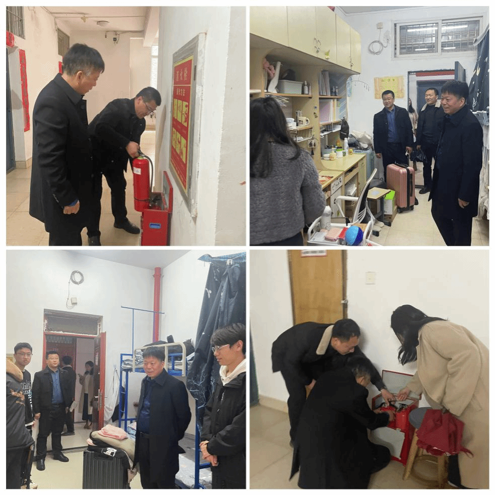 肖永鸿一行先后走访了教师办公室、实验室,围绕消防安全、用电安全、设施设备运行及环境卫生等方面开展细致排查。随后,肖永鸿一行针对学生宿舍进行安全排查,逐一检查生活区域设施情况、卫生状况、公共区域消防设施是否完备以及其他可能存在的安全隐患,对于排查结果进行登记,并及时解决。在走访的过程中,肖永鸿与同学们亲切交流,了解返校学生开学初生活、学习情况,提醒同学们及时调整自己的状态、作息,为新学期的到来打下坚实精神基础。