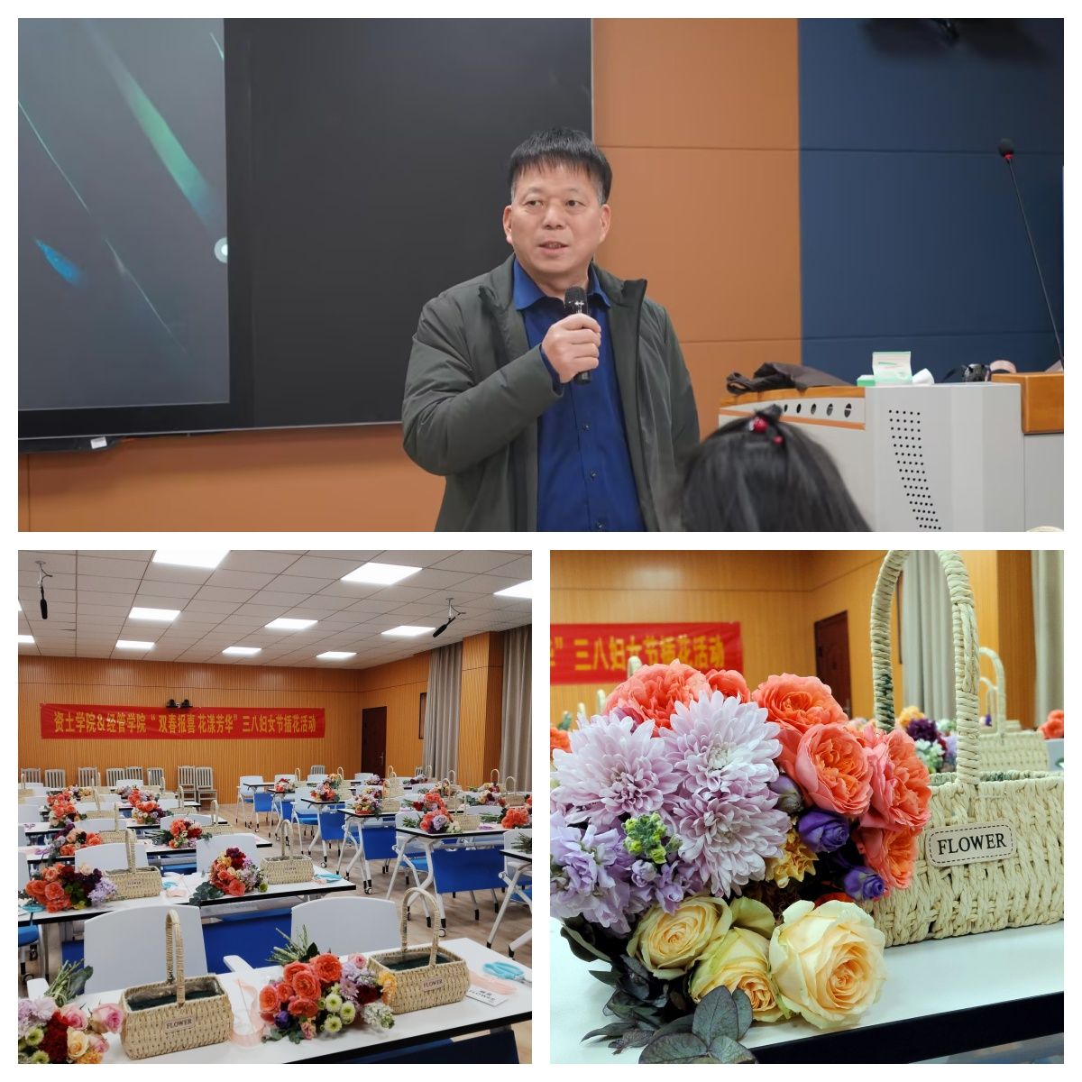 本网讯:为庆祝第115个“三·八”国际劳动妇女节,丰富女教职工精神文化生活,3月8日上午,beat365平台官方网站、资源与土木工程学院在主教628教室联合举办“双喜报春 花样芳华”三八妇女节插花活动。beat365平台官方网站党委书记肖永鸿、资源与土木工程学院党委书记刘俊峰出席本次活动,beat365平台官方网站30余名女教职工参与活动。