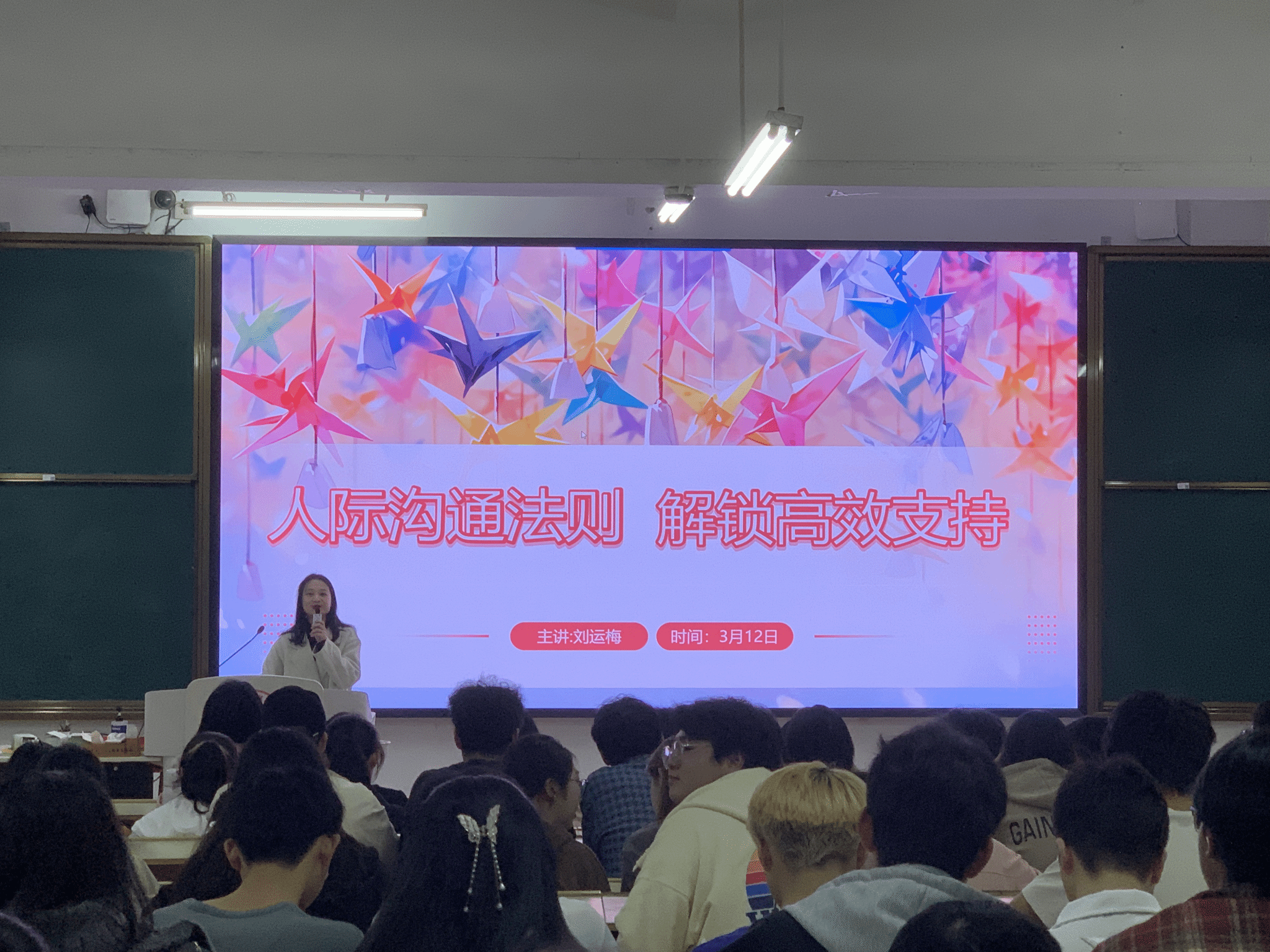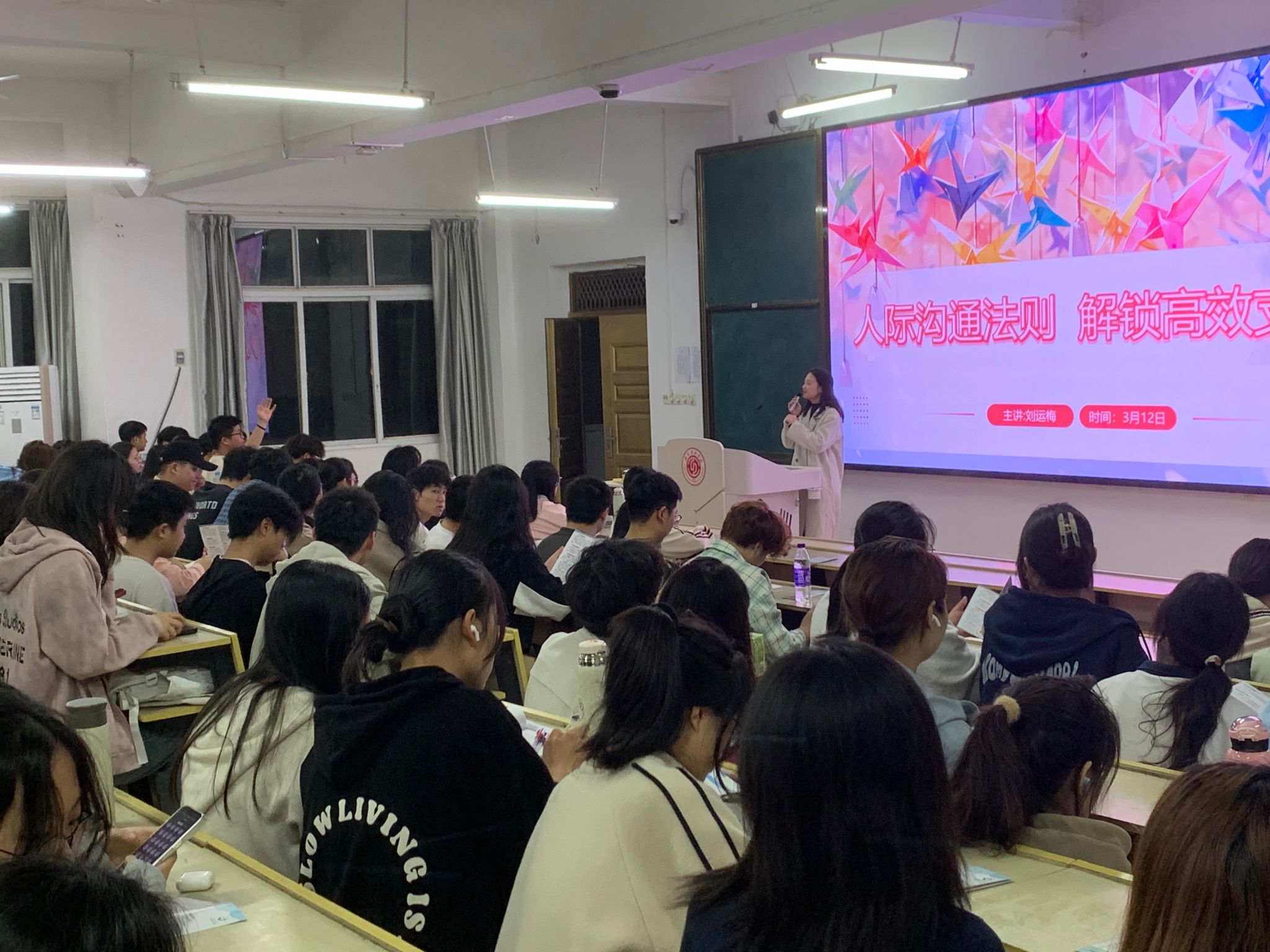 本网讯:3月12日晚上,beat365平台官方网站在主教Z1D1开展以 “人际沟通法则,解锁高校支持” 为主题的心理健康讲座,本次讲座由心理健康教育与咨询中心刘运梅老师主讲。beat365平台官方网站全体辅导员、各班心理委员、心理联络员等200余名学生参加讲座。