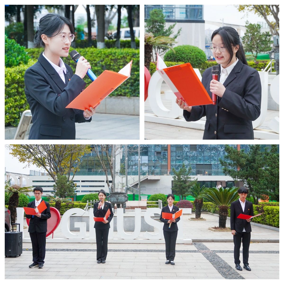 升旗仪式在庄严的国歌声中开始。国旗护卫队护送五星红旗冉冉升起,全体师生肃立注目。随后,四名学生代表齐唱迎评歌,歌声清脆、饱含深情,以真挚情感传递积极奋进的态度,诠释了经管学子在迎评促建工作中的担当。学生代表会计243班何丹随后进行发言,她呼吁同学们要以本科教学工作合格评估为契机,严于律己,提升学风,用勤奋、诚信和创新的精神面貌,诠释赣科学子的责任与担当,为学校发展贡献力量。