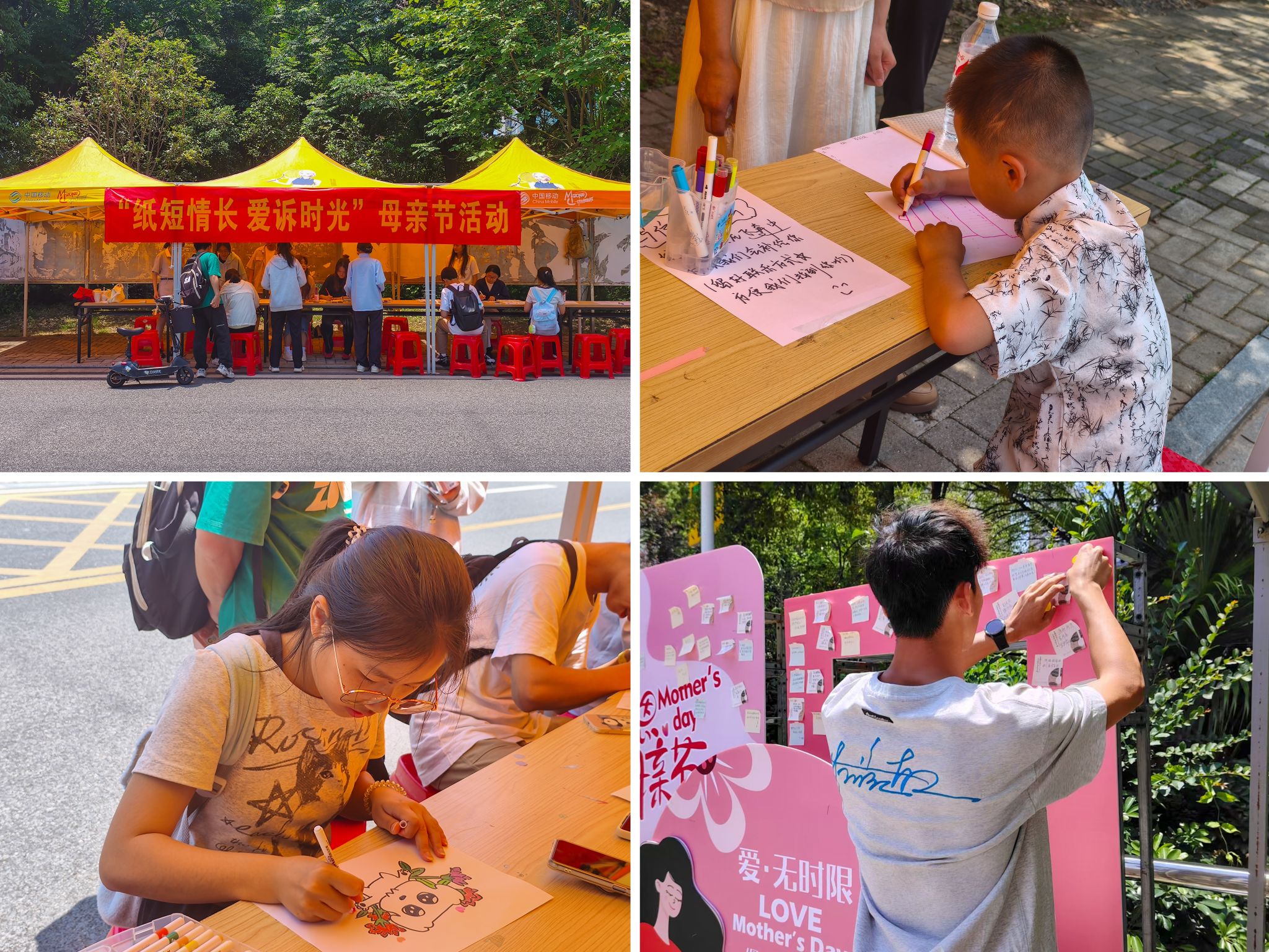 活动现场热闹非凡,时光留影区通过实体合影和创意合影的形式,让现场学子与母亲定格温馨瞬间;笔尖传情绘画区提供了绘画材料,同学们在勾勒线条、涂抹色彩的过程中,深度回忆与母亲相处的点滴,用艺术的形式定格母爱的瞬间;暖心寄语留言区,数百张手写留言组成了一面充满温度的情感展示墙,字里行间流淌着学子们最真挚的祝福与感恩;见字如晤书信区特别准备了传统信笺,这一环节不仅让同学们重温了传统书信的独特魅力,还用笔墨传情的方式,完成了代际间最深沉的情感对话。