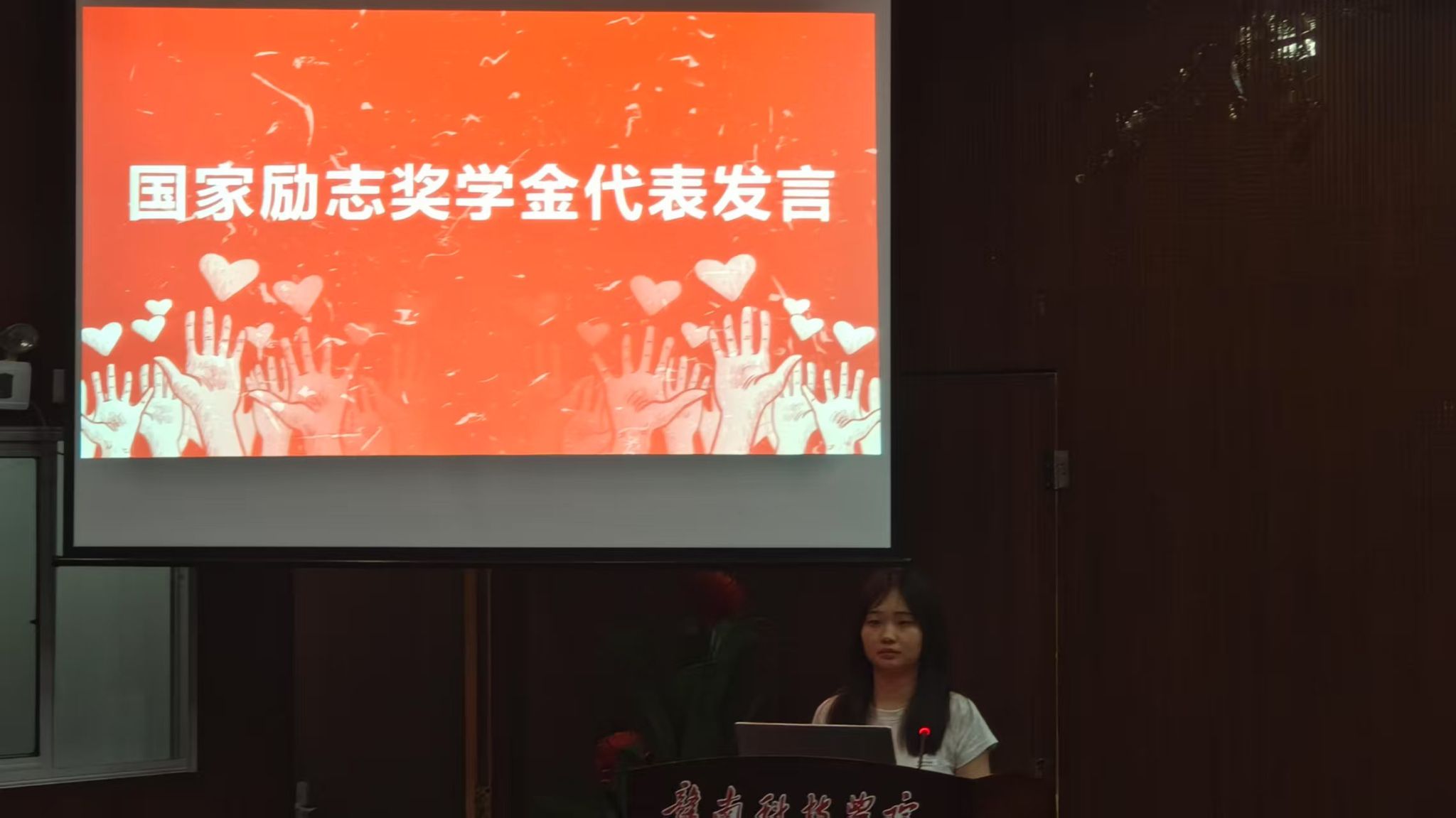 分享会上,优秀受助学生代表国贸211班彭龄瑶、金融212班涂蒙依次登台,分享她们的成长故事。在国家助学金和学校的关怀支持下,她们积极进取,合理规划学习时间,在专业课程上取得优异成绩,并积极参加各类学科竞赛和社会实践。同时,在今年成功考取理想院校的研究生。两位同学热情地分享考研备战心路历程和详细的学习方法,也在分享中鼓励同学们坚定信念、锚定目标不懈奋斗,让青春在奋斗征程中绽放绚丽之花。国贸211班彭龄瑶同学表示:“资助让我有机会追逐梦想,我会将这份温暖转化为前进的动力。”金融212班涂蒙表示:“资助给了我力量,我将继续前行。我也希望能尽自己的一份力,帮助更多需要帮助的人。”