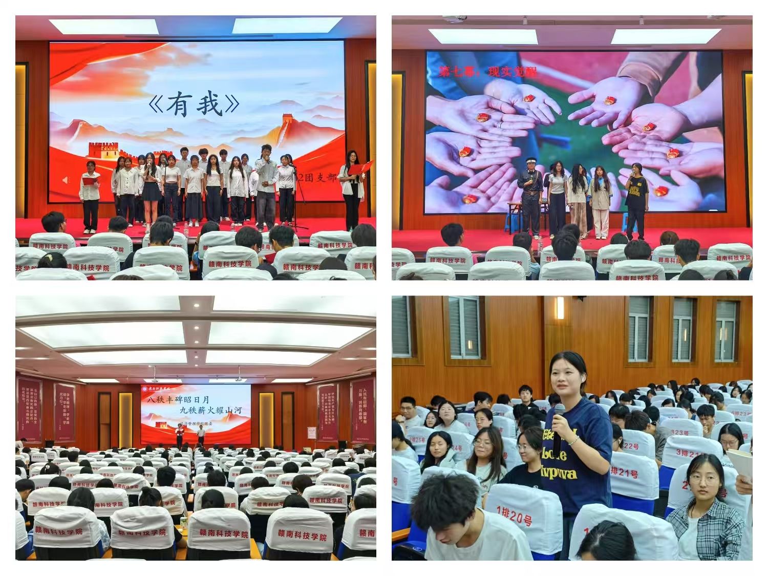 活动开始,电商231团支部带来歌曲《最美的太阳》,激昂旋律点燃全场热情,展现出青年学子如太阳般炽热的青春活力与积极向上的精神风貌。随后国贸241、242团支部的话剧《刑场上的婚礼》震撼上演,演员们以细腻的表演还原了革命先烈在战火纷飞中,即便面对死亡威胁,仍坚守信仰、忠贞于爱情的悲壮场景,让观众深刻感受到革命先辈们为理想献身的大无畏精神。电商241、242团支部的合唱《有我》,以青春之声唱响时代强音,整齐而充满力量的歌声中,彰显出青年一代勇担时代使命、接力奋斗的坚定信念与责任担当。活动特别设置红色知识问答环节,同学们积极抢答,在互动中重温革命历程,进一步加深对红色文化的理解。活动尾声,全体演员与领导老师合影留念,在热烈氛围中落下帷幕。