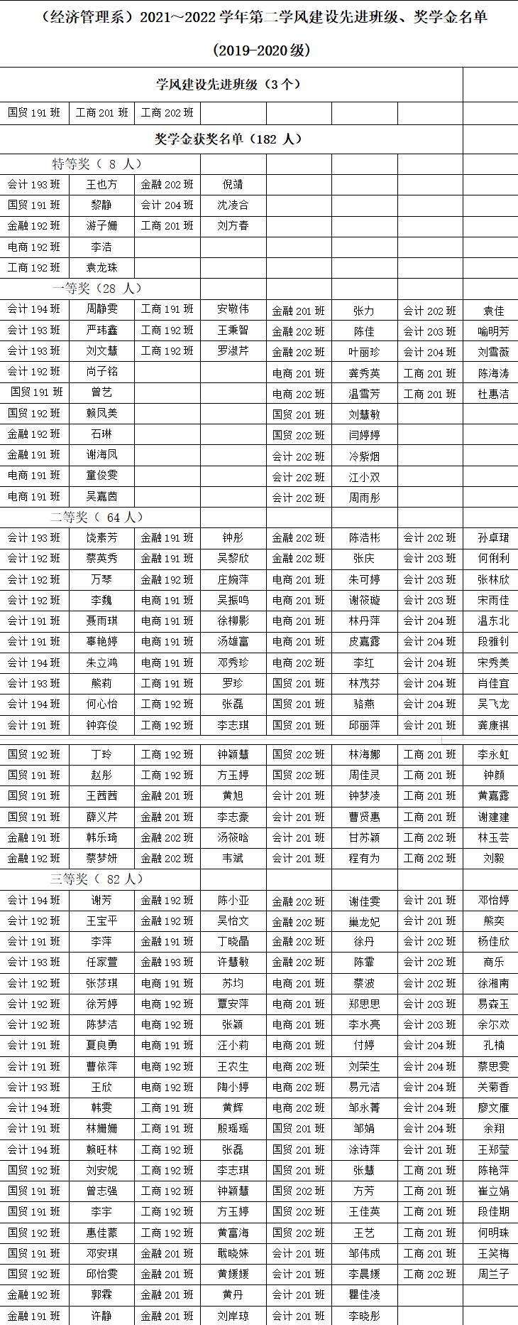 根据《beat365平台官方网站学生综合奖学金评定实施办法(试行)》《beat365平台官方网站学风建设先进班级评选办法(试行)》有关规定,按照院学工办《学生综合素质测评、综合奖学金评定及学风建设先进班级评选相关通知》要求,我系认真组织开展了2021-2022学年第二学期综合奖学金和学风建设先进班级评审工作。