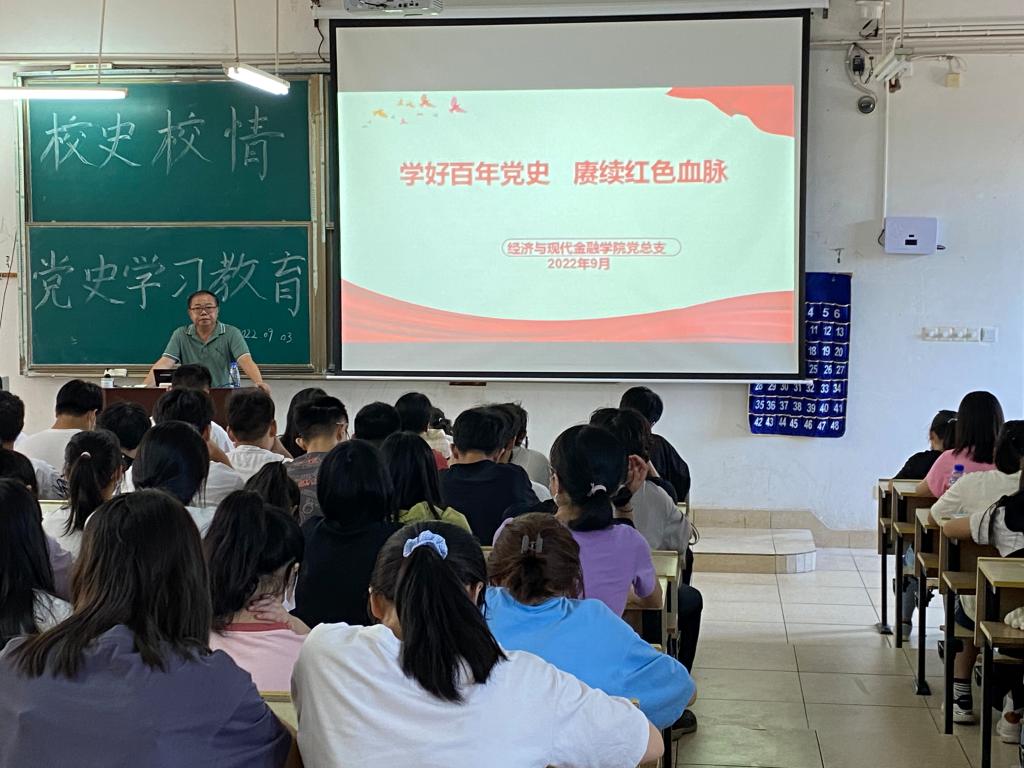 9月3日上午,经济管理系主任钟滨为新生讲述了学院的发展历史、校园文化、办学特色、师资力量、教科研成果等情况,增强了新生们内心的自豪感和使命感。经济管理系党总支书记卢帆兴详细阐述了中国共产党在领导全国各族人民进行革命、建设、改革的伟大实践中取得的宝贵经验,引导新生们学史明理、学史增信、学史崇德、学史力行。