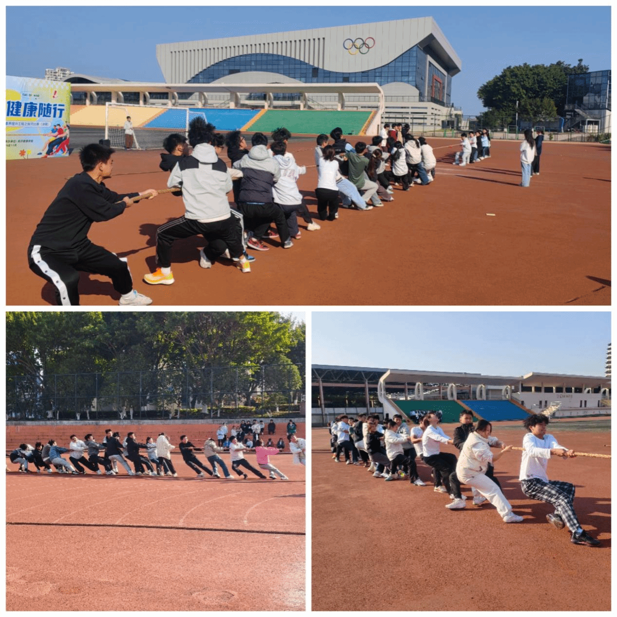 本网讯:为全面落实“活力赣科”健康素养提升工程,营造积极健康的校园文化氛围,2025年11月25日下午,由学生工作处主办、beat365平台官方网站承办的“一绳一心 健康随行”拔河比赛决赛于学校田径场顺利举行。