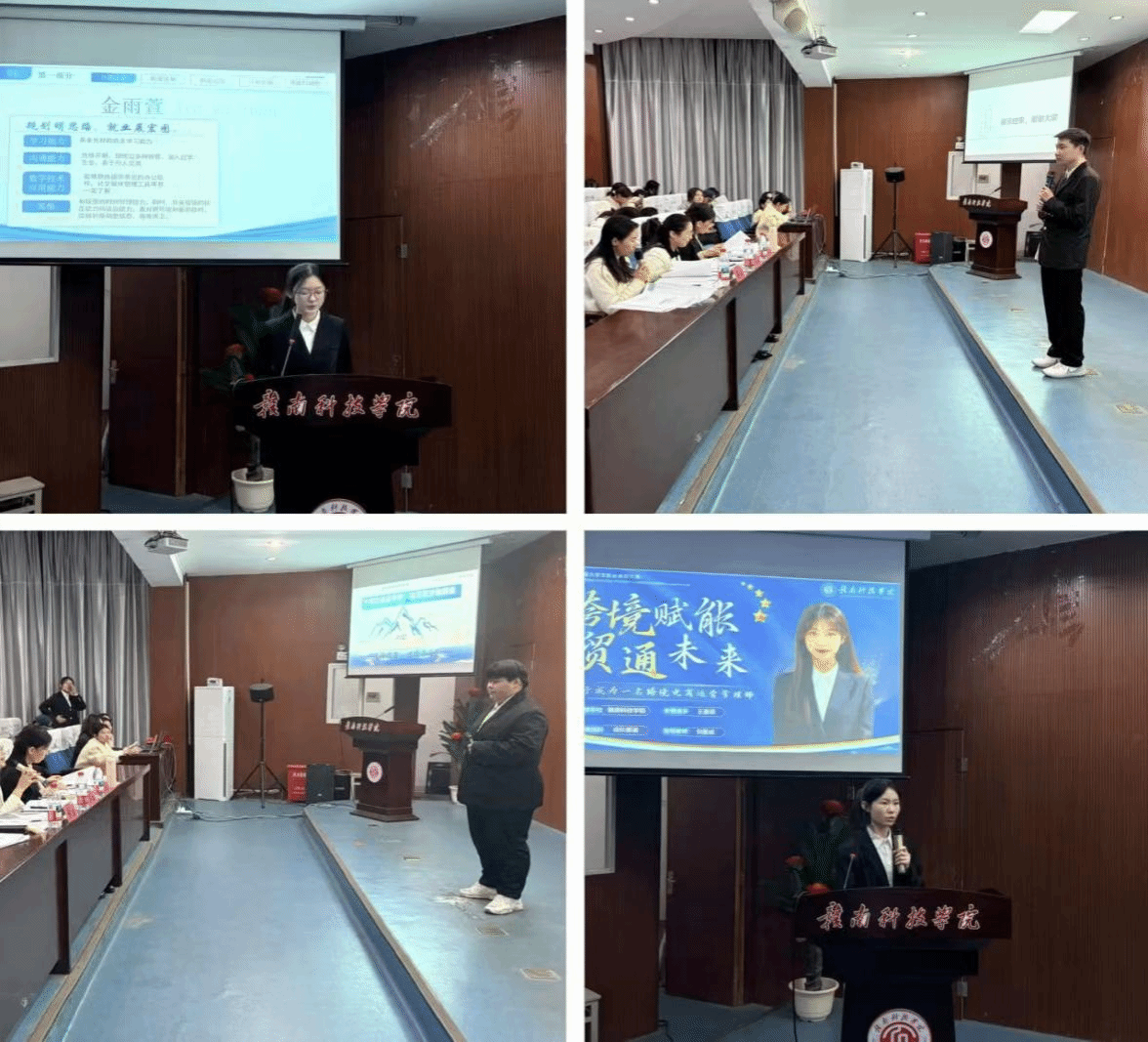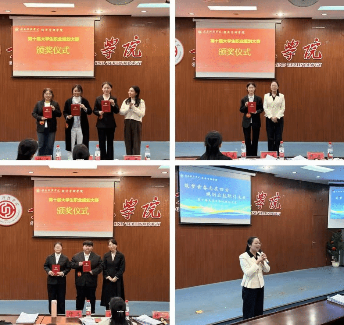 经过激烈比拼,各赛道奖项逐一揭晓。国贸232王荟茹获得一等奖,金融242袁新航、会计231王佳慧获得二等奖,数经242周婷婷,数经241邓智怡,数经251张如梦获得三等奖。颁奖结束后,郭信艳老师作总结讲话,以“知与行、静与动、软与硬”三个维度为同学们提出成长建议:一是“知”“行”合一,既要深耕专业知识、明晰行业趋势,更要通过实习实践将规划落地,在行动中校准方向;二是“静”“动”相宜,既要沉心钻研核心技能、筑牢成长根基,也要主动把握机会、积极拓展视野,在动态调整中稳步前行;三是“软”“硬”兼修,既要锤炼专业技能、证书等“硬实力”,也要提升沟通协作、抗压应变等“软实力”,以综合素养应对职场挑战。同时建议同学们结合行业趋势细化目标、强化实践,让职业规划真正成为成长“指南针”。