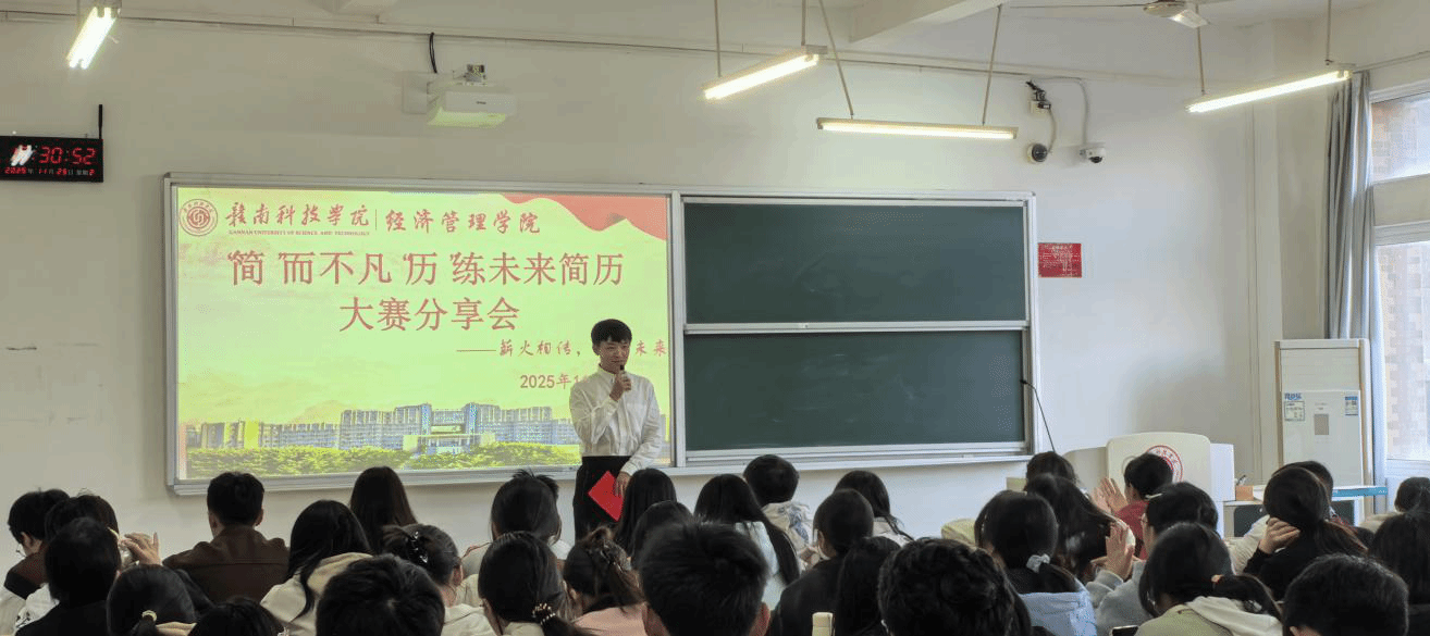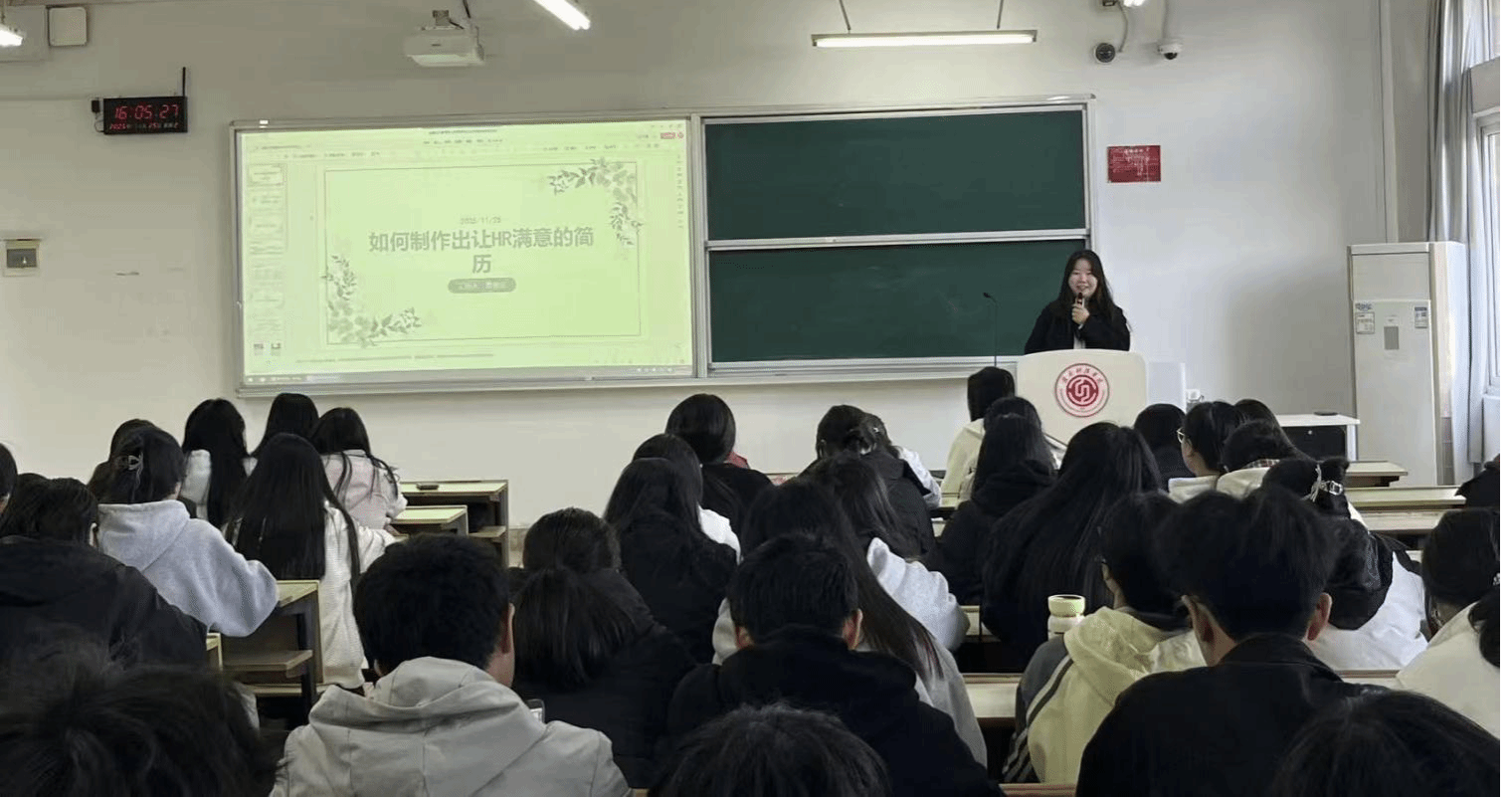 本网讯:11月25日下午,由beat365平台官方网站“经管领航·职赢社”工作室主办的“简”而不凡,“历”练未来简历经验分享会在主教Z102圆满落下帷幕。本次分享会邀请到在学院简历大赛中斩获佳绩的优秀学子,围绕简历撰写与职业表达展开深度分享,吸引了众多对职业规划充满热情的同学到场聆听,现场座无虚席,交流氛围热烈。