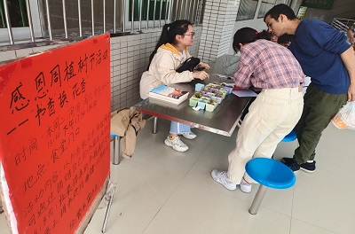 本网讯:为提高我系学生的感恩意识、环保意识和公益意识,3月16日至3月20日,经济管理系团总支、学生会组织开展了感恩周植树节——以“书香”换“花香”主题活动。