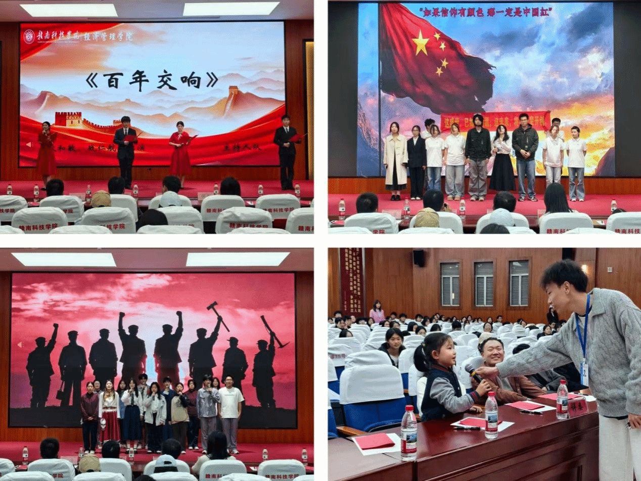 活动伊始,全体起立奏唱国歌,庄重的旋律拉开活动序幕。随后,各参演队伍依次登台展演,10个优秀节目轮番亮相、精彩纷呈。话剧《荣光之路》以跌宕起伏的剧情、鲜活生动的演绎,重现了革命先辈不畏艰险、奋勇拼搏的壮阔征程;《红土地上的新绿》则通过沉浸式表演,生动展现了新中国成立以来的发展变迁与时代风貌,引发在场学子强烈共鸣。活动期间穿插的红色历史趣味问答环节,进一步调动了现场氛围,让学子在互动中加深对红色历史的认知。活动尾声,全体参演演员与工作人员合影留念,定格难忘瞬间。