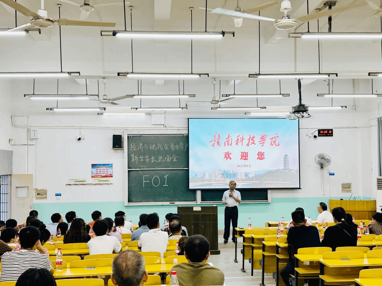 本网讯:为促进家校联动,充分发挥家校教育合力,9月8日晚上,经济与现代金融学院在龙飞主楼F01教室召开2023级新生家长见面会。学校党委副书记、校长李国金,过渡期管理委员会委员薛香恒,经济与现代金融学院临时负责人钟滨,学院教学负责人王波及各教研室主任出席了本次会议。会议由学院学工负责人梁文学主持。