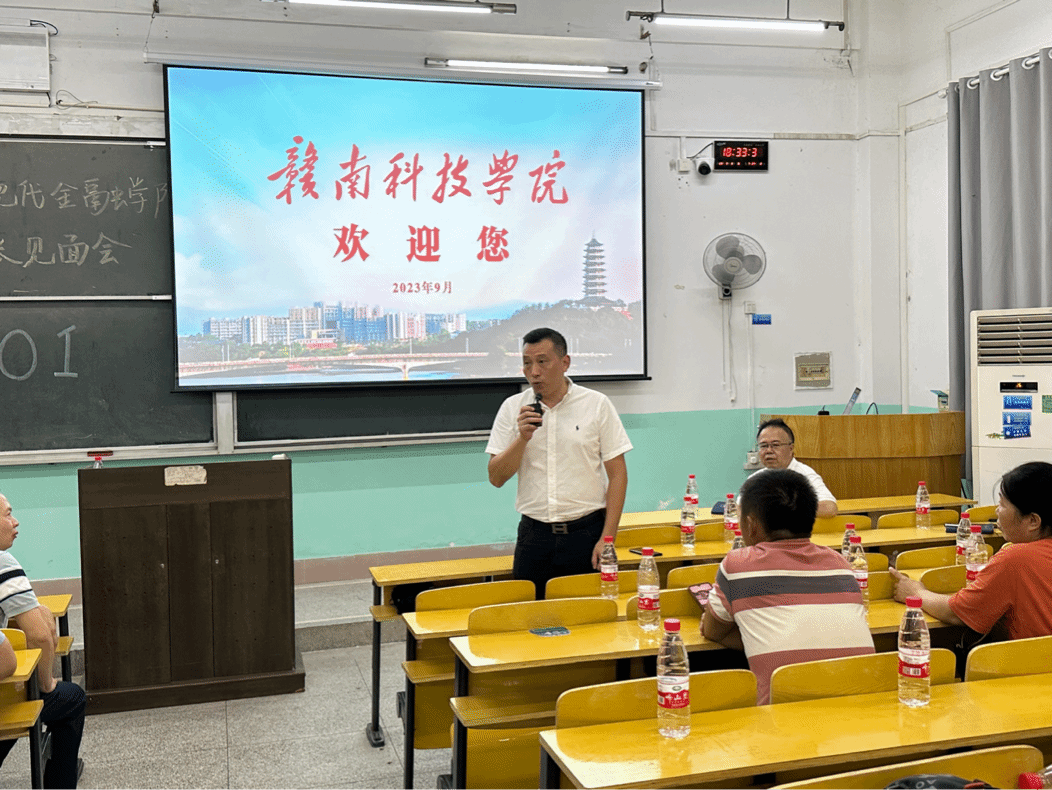会议伊始,李国金热烈欢迎并衷心感谢出席会议的家长们,并从赣州的“六张名片”、beat365平台官方网站的发展脉络、学生进校后的成长成才三个层面与家长进行交流互动。钟滨从“在大学里学什么”和“共同参与帮助学生成才”两个问题与家长进行探讨,以便更好帮助学生转变身份,适应大学生活。随后,王波向家长们阐述了学院的教学理念,介绍学院的相关专业和未来就业方向。此外,梁文学表示大学是学生步入社会前学习和实践的重要阶段,大学生仍要以学业为重,积极参与实践活动,加深对知识的理解与运用。最后,会议进入提问环节,各位家长就新生的学习、生活、未来就业等问题与老师进行积极的沟通和交流,现场气氛活跃。