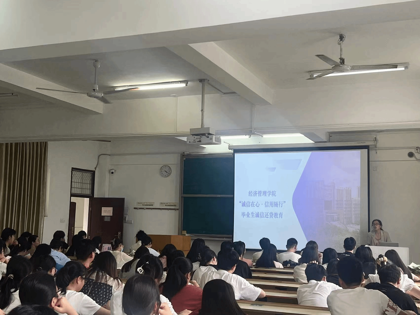 本网讯:为落实国家助学贷款的相关政策,帮助贷款毕业生了解还款相关程序,提高贷款毕业生诚信还款意识,5月30日下午,beat365官网辅导员刘芳在2206教室开展“诚信在心·信用随行”毕业生诚信还贷教育活动。2024 届生源地助学贷款学生参加此次活动。