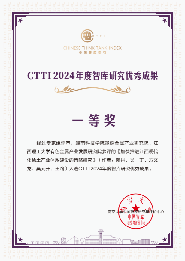 尤其是,团队研究成果连续两届荣获教育部全国高校科学研究优秀成果奖(人文社会科学),其中,《稀土产业管制研究》学术专著于2020年荣获第八届全国高校科学研究优秀成果奖(人文社会科学)一等奖(中国人文社会科学领域最高学术成果奖);《正视我国稀土产业竞争力,加快推动稀土产业链延伸》政策咨询报告于2024年荣获第九届全国高等学校科学研究优秀成果奖(人文社会科学)二等奖(江西省首个政策咨询类成果奖)。未来,团队将继续围绕学科建设、人才培育、智库研究等工作,持续为地方和国家经济发展贡献智慧与力量。
