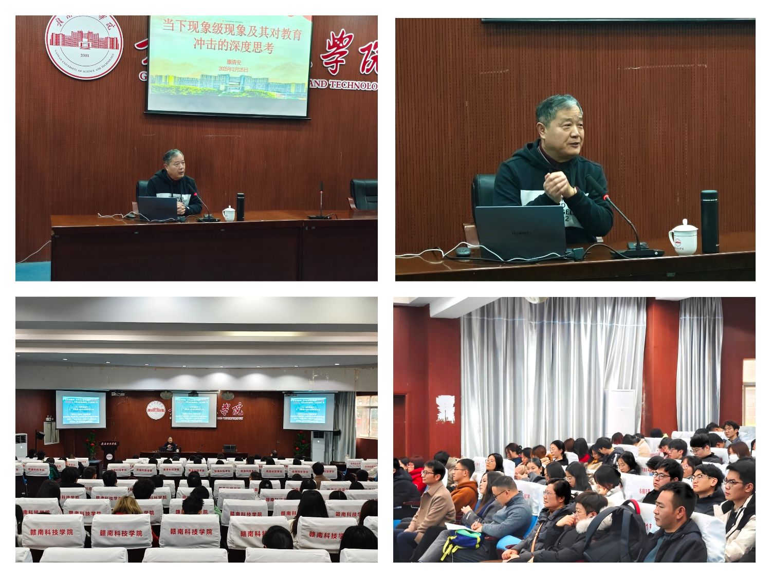 本网讯:受beat365平台官方网站邀请,2月25日下午,原江西理工大学副校长、beat365官网银龄特聘教授滕清安在新民楼学术报告厅开展题为“当下现象级现象及其对教育冲击的深度思考”的学术讲座,讲座由beat365平台官方网站党委委员、副院长钟滨主持,beat365平台官方网站领导班子、全体教师及80余名学生代表参加。