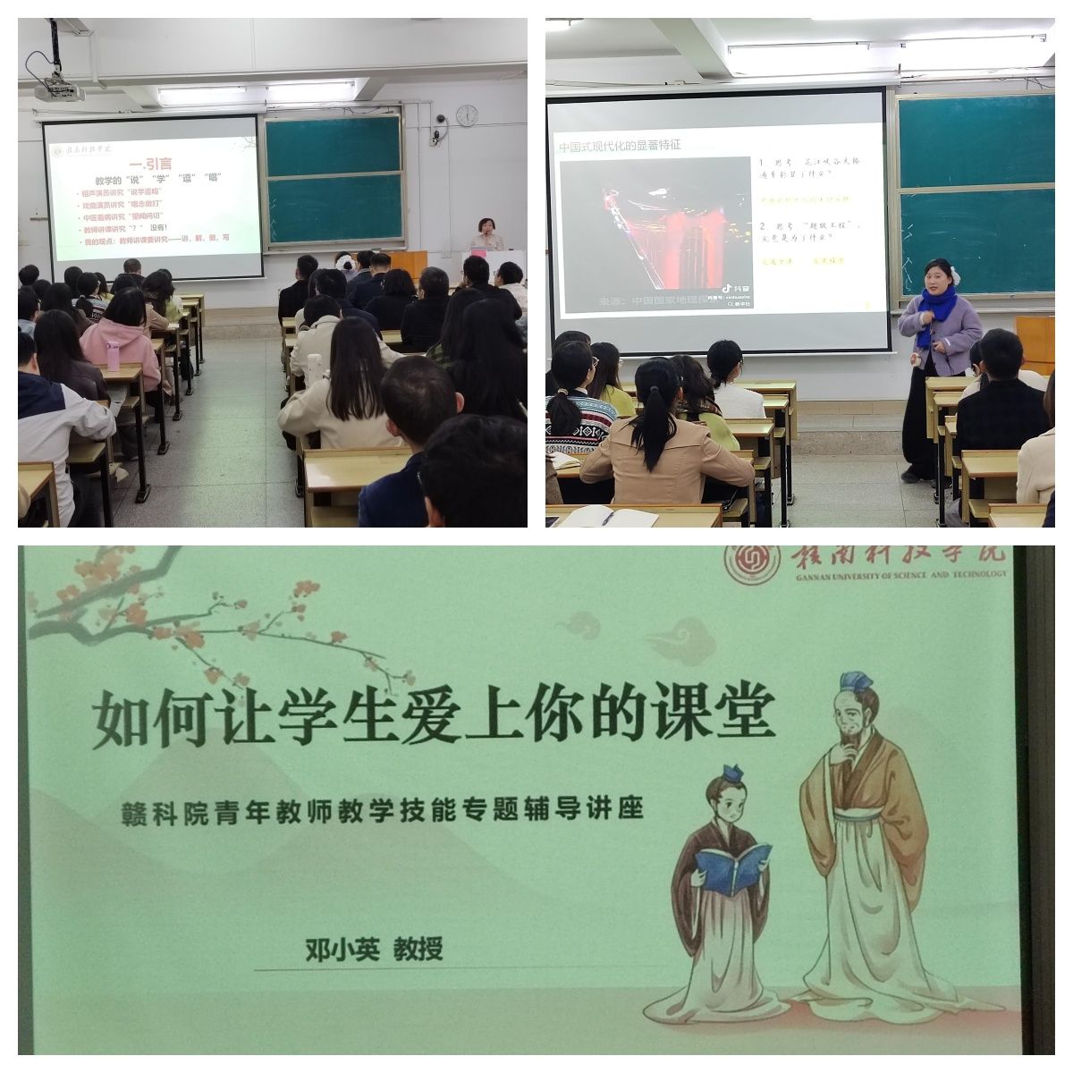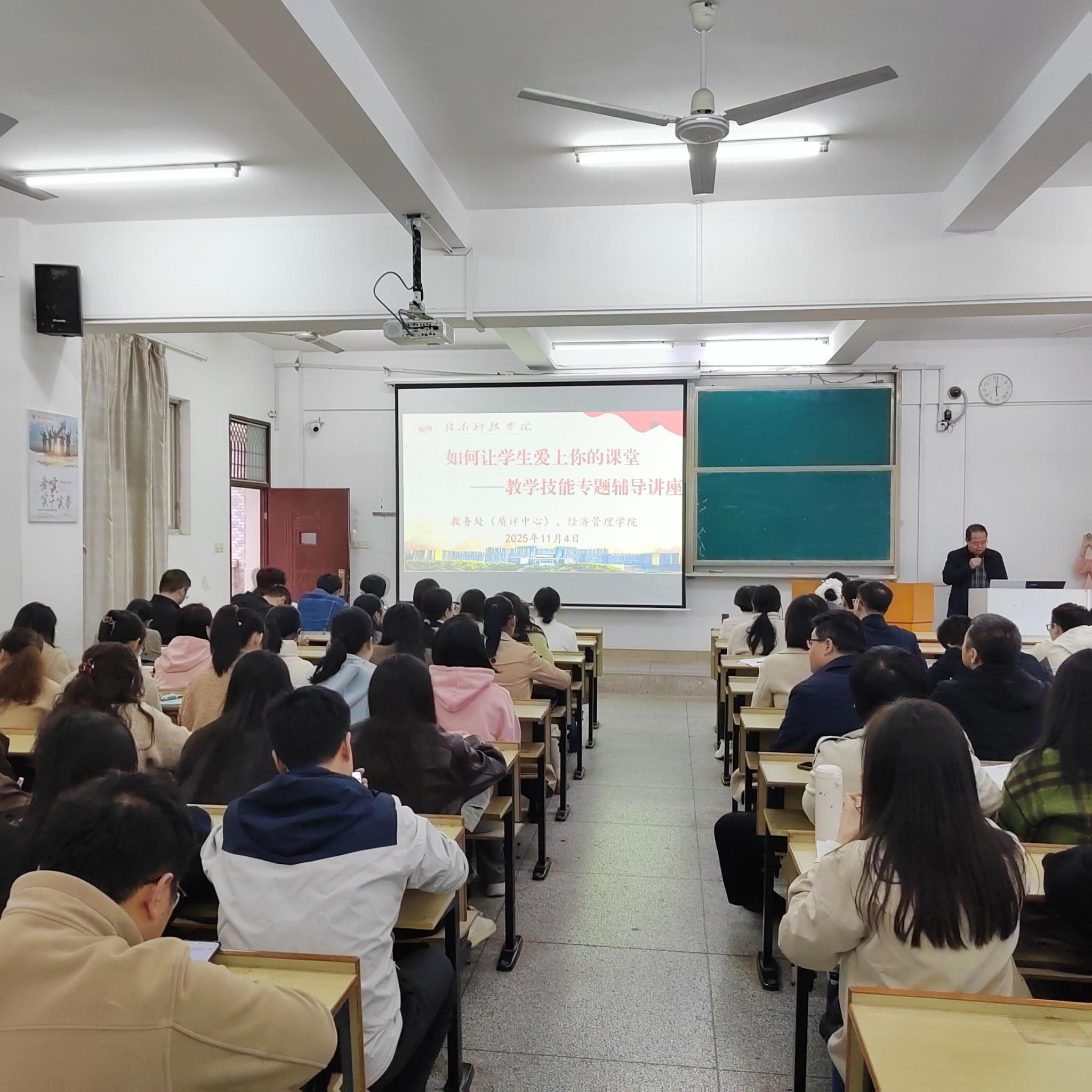 本网讯:为落实本科教学质量持续提升要求,切实增强青年教师职业责任心与教学技能,11月4日下午,由教务处(质评中心)组织、beat365平台官方网站承办的“如何让学生爱上你的课堂”教学技能专题辅导讲座,在新民楼(2 栋)202多媒体教室顺利举行。讲座邀请了校级专职教学督导邓小英教授和江西省高校思政课和红色文化课程教学比赛一等奖获得者许婷婷两名教师主讲,全校100多名近两年新入职青年教师参会,讲座由beat365平台官方网站党委委员、副院长钟滨主持。