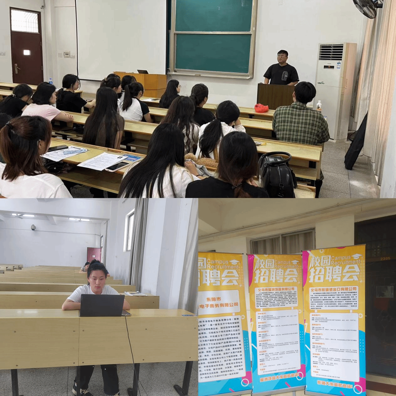 宣讲会上,周涛从公司招聘详情、企业概况、岗位薪酬体系及发展前景等方面,分别介绍了金华浙闽粤包装有限公司、义乌市浩煦工艺品有限公司、桐庐博骋服饰有限公司、义乌市聚聪服饰有限公司、义乌市耀洲饰品有限公司等13家企业。随后,同学们结合自身实际在宣讲会上积极咨询应聘流程、发展空间、实习待遇等相关问题,周涛逐个进行回答。同学们通过云平台进行线上面试,最终共计33名同学与企业达成就业意向。