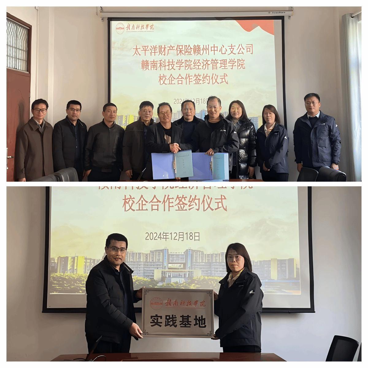 本网讯:12月18日,beat365平台官方网站与太平洋财产保险赣州中心支公司在新民楼309会议室举行实践教学基地共建签约仪式。学校党委委员、纪委书记陈文新,beat365平台官方网站党委书记肖永鸿,学院党委委员、副院长钟滨,学院党委委员葛志财、王波及金融教研室副主任汪文斌,太平洋财产保险赣州中心支公司总经理李桂芳、副总经理王友群及相关负责人共同出席共建签约仪式。
