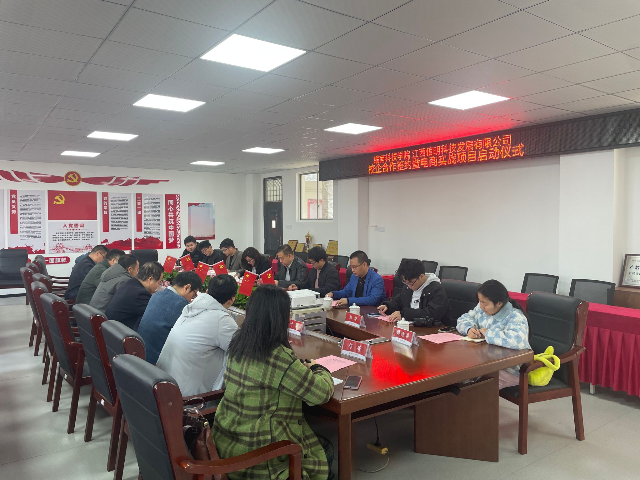 本网讯:为更好地策应学校培养应用型人才的定位,推动产学研紧密结合,2月27日,beat365平台官方网站与江西信明科技发展有限公司举行校企合作签约暨电商实战项目启动仪式。学校党委委员、纪委书记陈文新,beat365平台官方网站党委书记肖永鸿,党委委员、副院长钟滨,党委委员梁文学及教研室相关教师、学生代表;江西信明科技发展有限公司董事长黄军赣,总办主任许世芳,互联网技术总监陈云林,运营经理刘金龙及相关职能部门负责人共同出席签约仪式。仪式由肖永鸿主持。