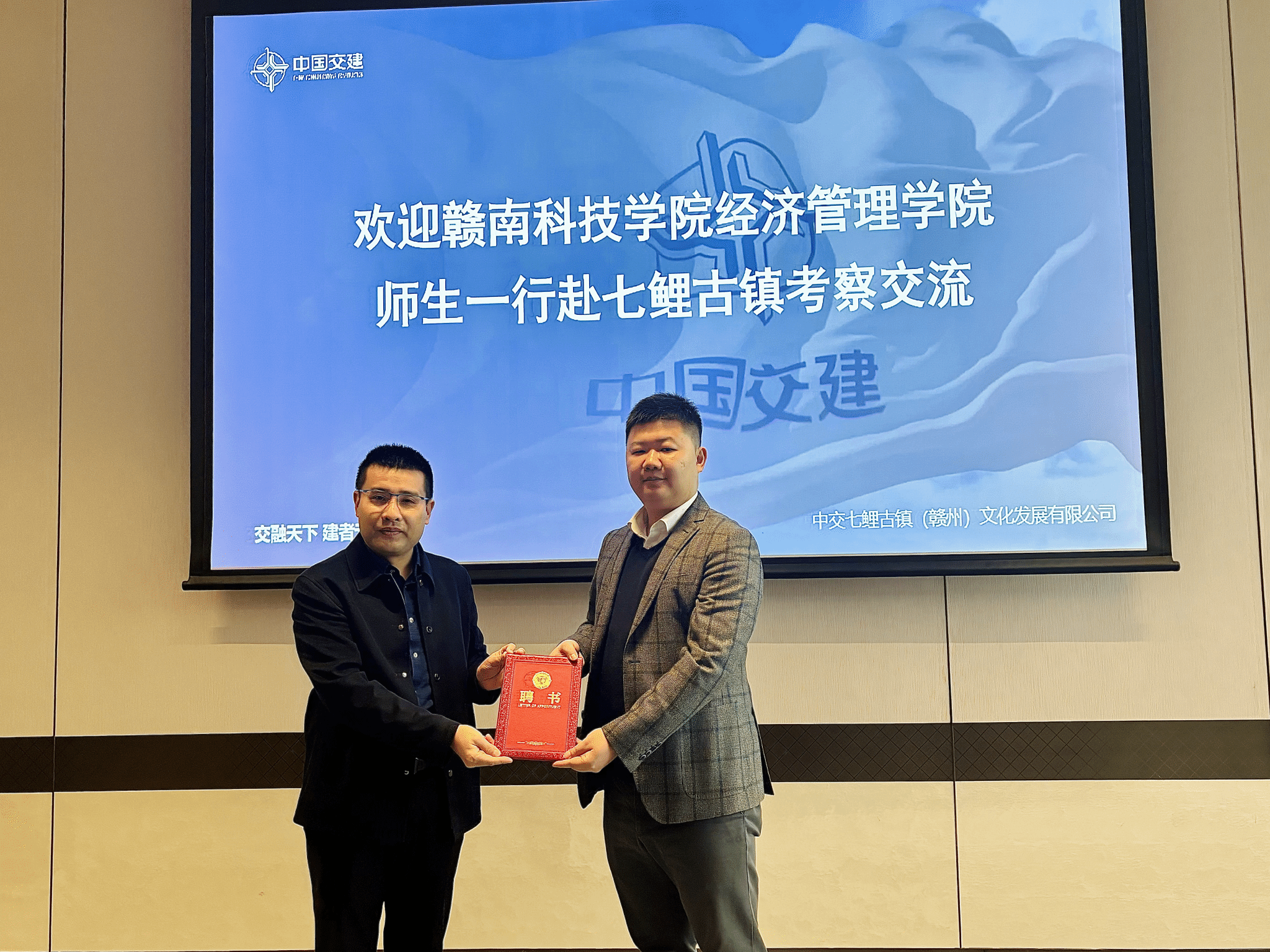 活动伊始,beat365平台官方网站党委委员王波代表学院,向中交七鲤古镇(赣州)文化发展有限公司副总经理刘林辉和总经理助理、人力资源总监周家豪颁发了企业导师聘书。