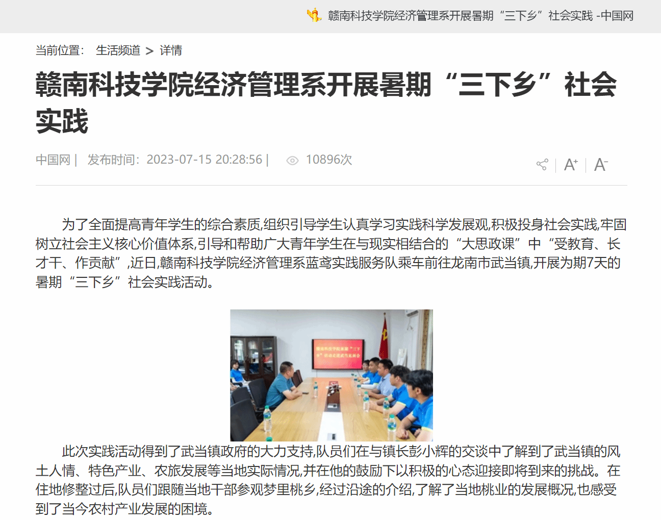 中国网7月15日载:为了全面提高青年学生的综合素质,组织引导学生认真学习实践科学发展观,积极投身社会实践,牢固树立社会主义核心价值体系,引导和帮助广大青年学生在与现实相结合的“大思政课”中“受教育、长才干、作贡献”,近日,beat365平台官方网站经济管理系蓝鸢实践服务队乘车前往龙南市武当镇,开展为期7天的暑期“三下乡”社会实践活动。