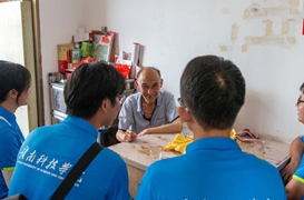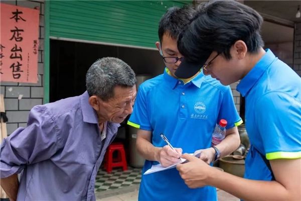 第三天,蓝鸢实践服务队走访周边村镇,深入基层群众,开展社会实践调研,并走访慰问老党员。队员们穿梭在人来人往的商贸市场中,向当地民众发放反诈骗与消防宣传单,积极宣传反诈骗和消防安全知识。同时,以问卷调查的形式对当地的数字科技普及情况和留守儿童情况进行调研,助力乡村数字化振兴。午间休息过后,队员们走访慰问乡镇老党员,聆听他们过往的峥嵘岁月。访谈最后,老党员叶碧汉寄语:“同学们要积极进取,保持初心,能干肯干,跟党走,听党话。”