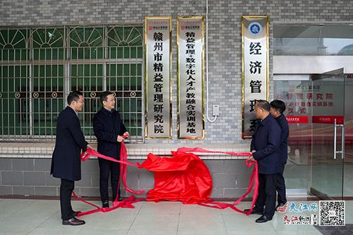 仪式最后,全体人员移步新民楼举行了“赣州市精益管理研究院”和“精益管理+数字化人才产教融合实训基地”揭牌仪式。