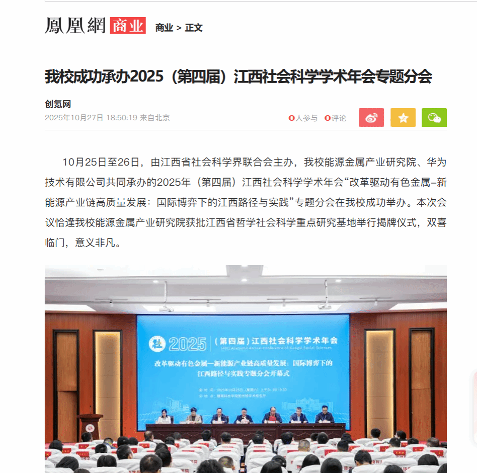 【凤凰网】beat365平台官方网站成功承办2025(第四届)江西社会科学学术年会专题分会