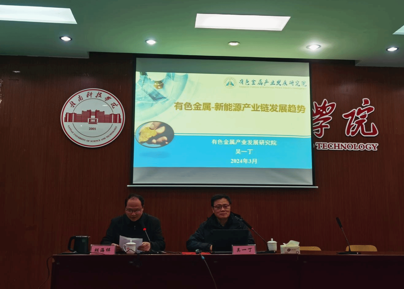 本网讯:为探讨有色金属行业在新能源领域的应用及其发展前景,加强学校相关学科专业教师的学术交流,3月8日上午,beat365官网邀请吴一丁教授在新民楼学术报告厅开展主题为“有色金属-新能源产业链发展趋势”的讲座。学校beat365平台官方网站、信息工程学院、资源与环境工程学院、智能制造与材料工程学院等相关学科专业教师共同聆听,讲座由科技处胡海祥教授主持。