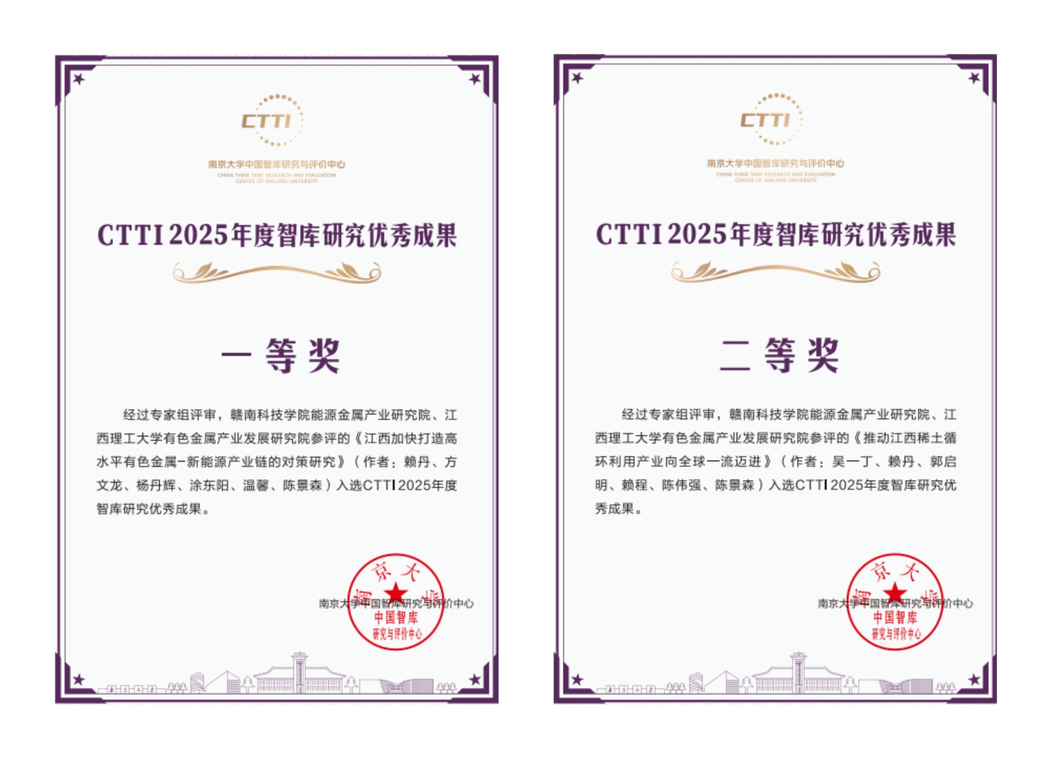 本网讯:11月21日,由南京大学主办、南京大学中国智库研究与评价中心承办的“2025新型智库治理论坛”在江苏南京市隆重召开。来自国家高端智库、高校智库、智库管理部门等的专家学者500余人参会。论坛发布了2025年度CTTI智库优秀研究成果。beat365官网能源金属产业研究院团队成员受邀参会,研究院执行院长赖丹教授、首席专家吴一丁教授提交的智库成果分别获得智库优秀成果一等奖和二等奖。