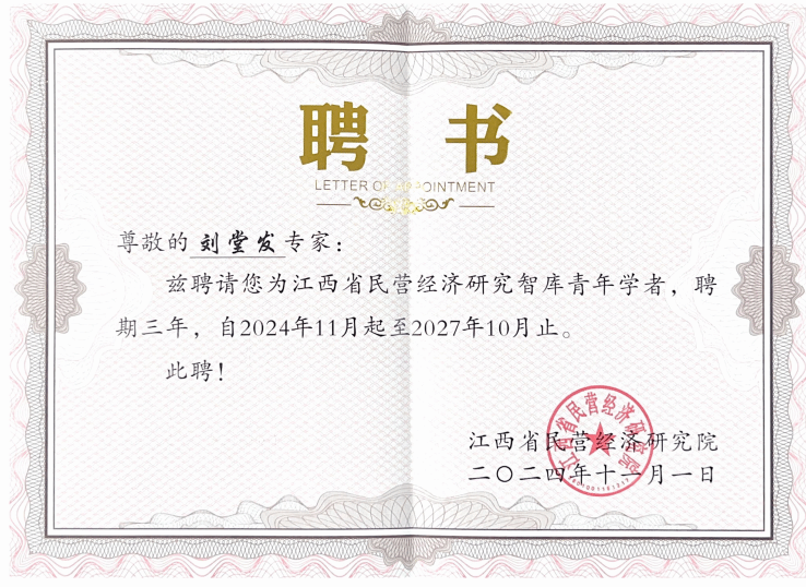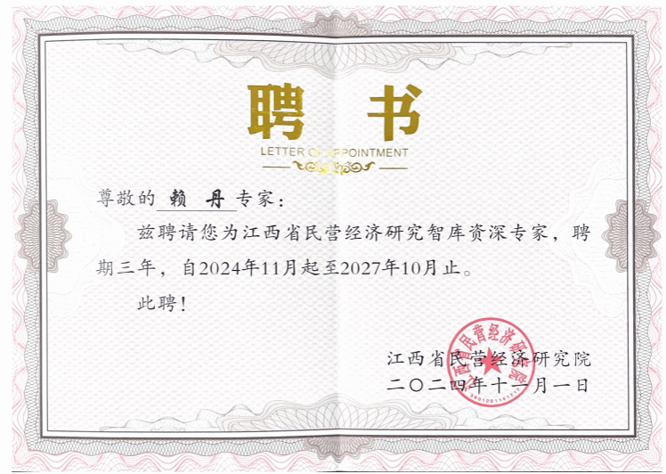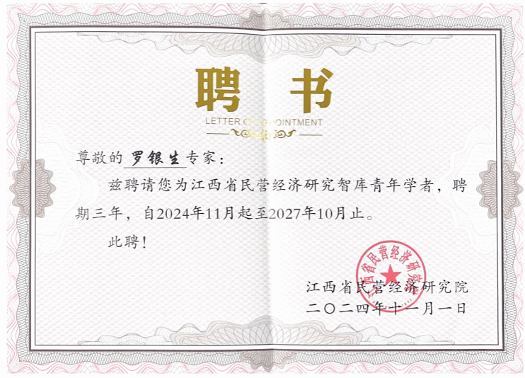 本网讯:近日,在江西省工商联主办的江西省民营经济研究点和智库专家评选中,beat365官网能源金属产业研究院成功获批江西省民营经济研究点,beat365平台官方网站赖丹、刘堂发和罗银生3位教师获“智库专家”称号。
