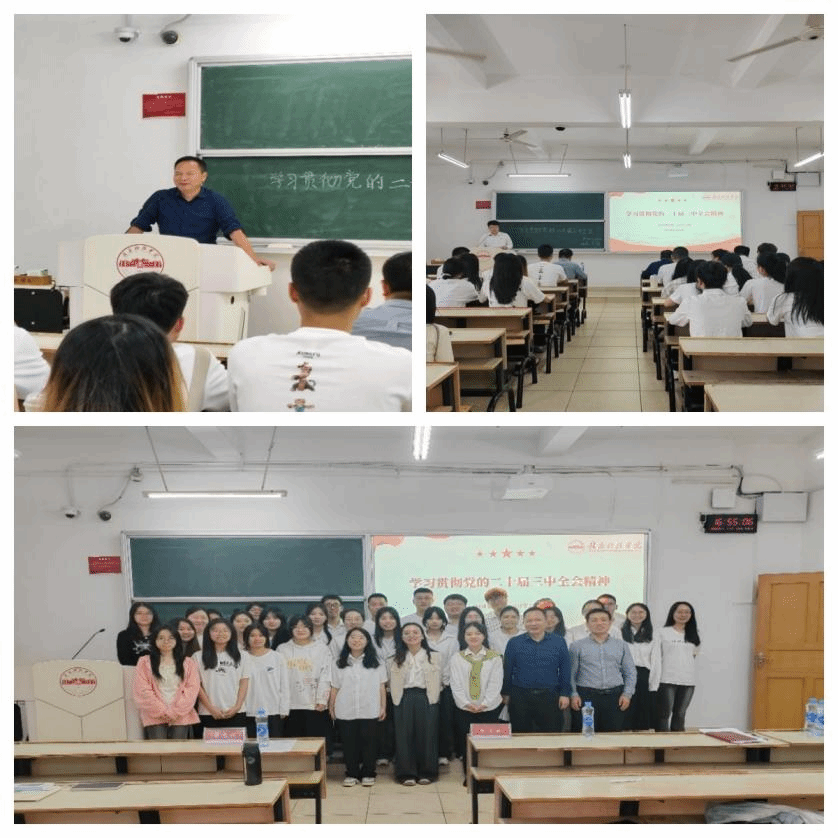 班会以学习文件精神、知识竞赛和小组讨论的形式展开,同学们积极分享了自己对党的二十届三中全会精神的理解和感悟。陈文新对本次主题班会给予高度评价,同时向同学们提出三点期望:一是要加强学习,树立远大理想;二是要珍惜时间,把握当下学习机会;三是要坚持问题导向,结合自身实际明确未来目标和方向并努力奋斗。他强调,同学们要将个人理想融入国家发展大局,深入学习和贯彻党的二十届三中全会精神,以更加饱满的热情投入未来的学习生活中。